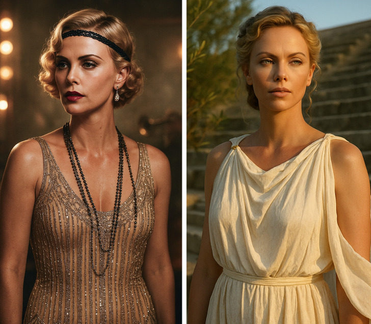 Думается нам, что утонченная красота Шарлиз Терон могла бы сделать ее музой как для творцов в Древней Греции, так и в ревущих Двадцатых