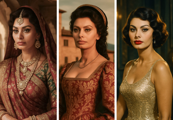 Роскошные черты Софи Лорен пришлись к месту практически везде — от Империи Великих Моголов до Флорентийского Ренессанса или времен Великого Гэтсби