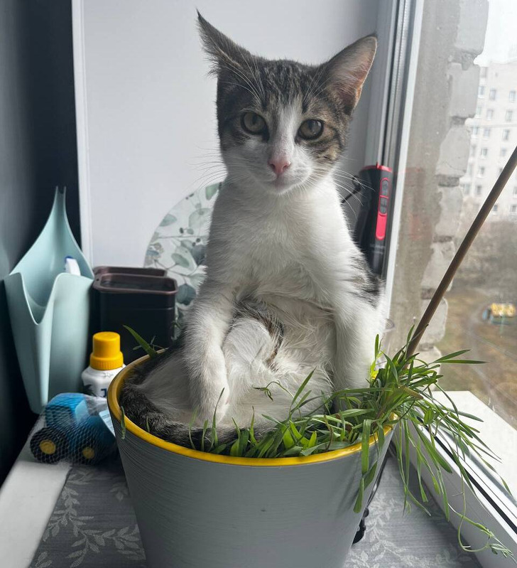 «Купила траву для еды, но кот решил использовать ее иначе» Боже, он просто гений. Это так смешно!