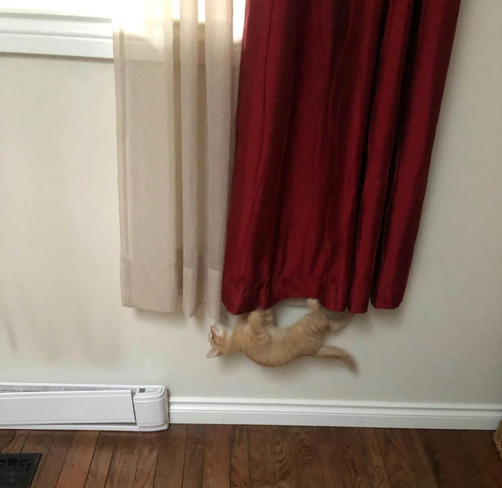 «Кот считает, что висеть вот в такой позе — это вершина комфорта»