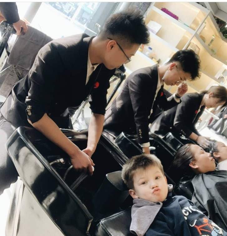 У каждого сотрудника своя работа. Один моет голову, другой стрижет, третий красит волосы, четвертый делает укладку. Помните, когда в привычных нам парикмахерских волосы разделяют прядками, остальные закалывают крабиком? Так вот здесь вместо крабика ассистент, в обязанности которого входит передавать готовые пряди мастеру.