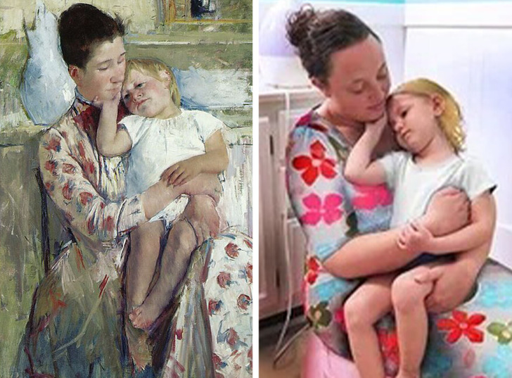 Кто может лучше всего повторить картину «Мать и дитя»? Конечно же, мама и ее ребенок