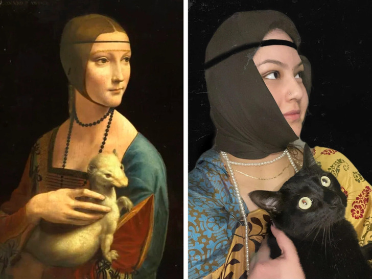Если у вас нет горностая, то воссоздать известную картину Леонардо да Винчи поможет кот!
