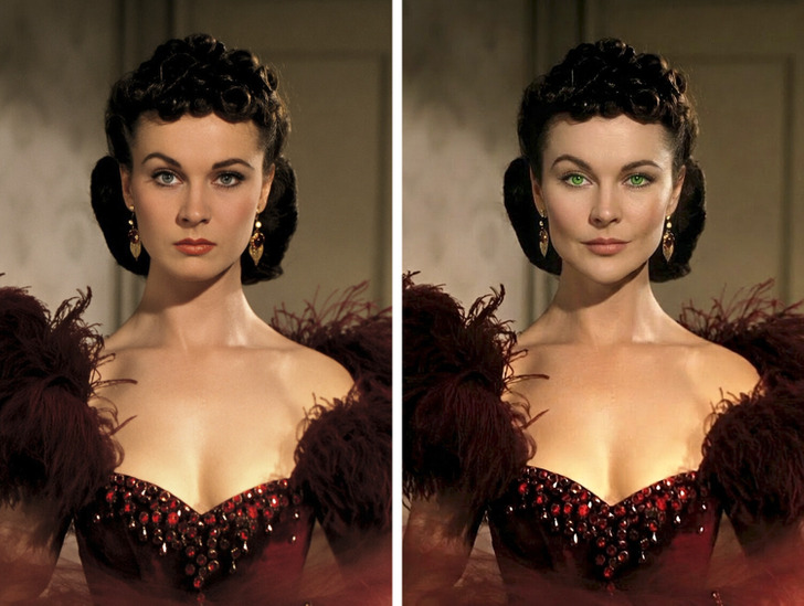 После того как Вивьен Ли сыграла Скарлетт, утвердилось мнение, что героиня была невероятной красавицей, от которой глаз нельзя было оторвать. Но на самом деле книжная Скарлетт просто миловидная. У нее темные волосы, зеленые глаза, лицо с широкими скулами и точеным подбородком.