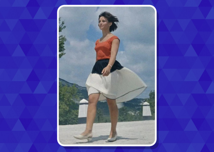 Наряд получился своеобразным гимном эпохе 60-х. Лаконичный верх и летящая юбка-солнце стали символом свободы и юности. Образ вполне можно взять на заметку и современным модницам.