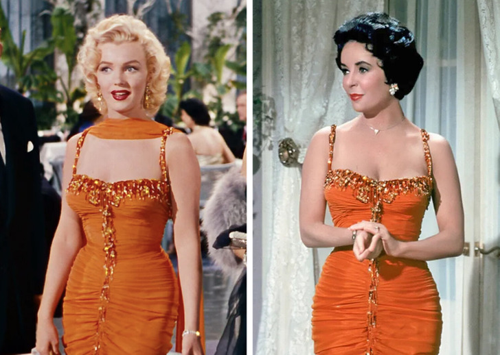 9. Кто из див примерил это оранжевое платье — Мэрилин Монро или Элизабет Тейлор? На наш вкус, на обеих оно сидит прекрасно