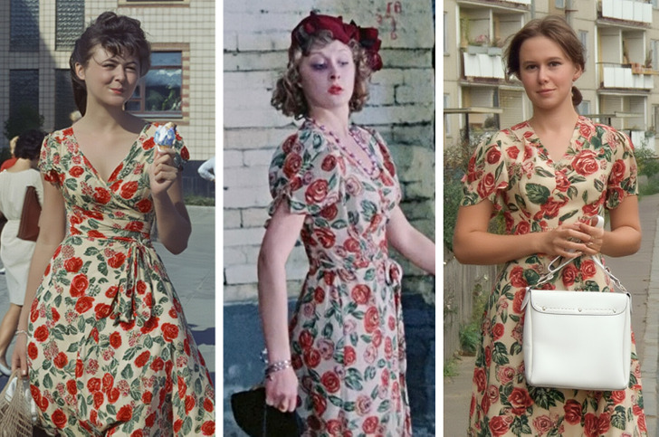 Актриса, носившая это пестрое платье, надолго запомнилась зрителям после выхода картины, в том числе и благодаря наряду. Многие модницы того времени вдохновились этим слегка легкомысленным, но веселым образом.