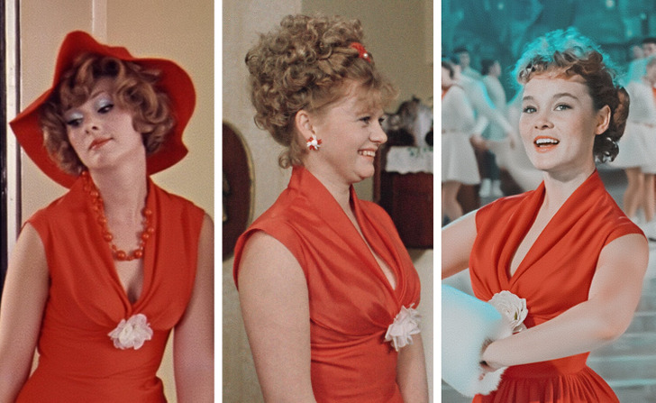 4. Кто примерил приталенное красное платье — Галина Беляева в образе Ольги Скворцовой, Ирина Муравьева, сыгравшая Людмилу Свиридову, или Валентина Воилкова в роли Риты?