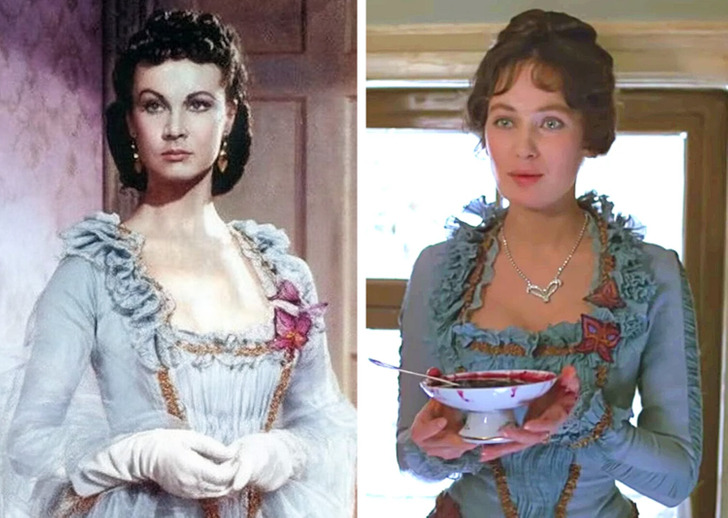 1. Кому принадлежало роскошное голубое платье — персонажу Вивьен Ли или героине Ларисы Гузеевой?