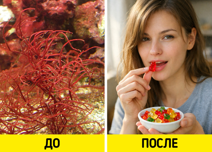 5 лет назад моя подружка стала вегетарианкой. И тут прихожу в гости, а у нее целая вазочка желейных мишек! Вроде как продукт животного происхождения. Она говорит: «Угощайся, это мне Витя купил. Их же делают из ирландского мха!» Было вкусно, и я полезла в интернет искать, что это за мох. Оказалось, так называются лохматые морские водоросли красного цвета, из которых делают агар-агар.