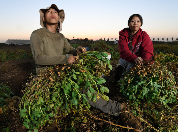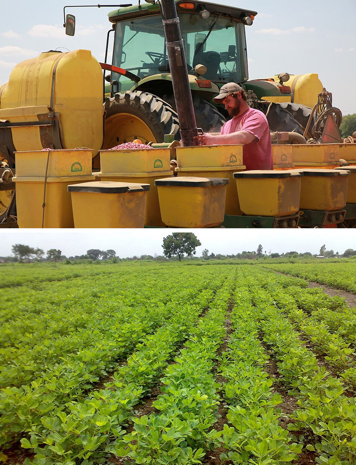 Арахис растет кустами высотой около 40 см. Фермеры засевают им целые плантации. Многие используют крупногабаритную сельскую технику для посева и обработки полей. Смотришь на фото, и будто в деревне у дедушки: только вместо картошки сеют «орешки».
