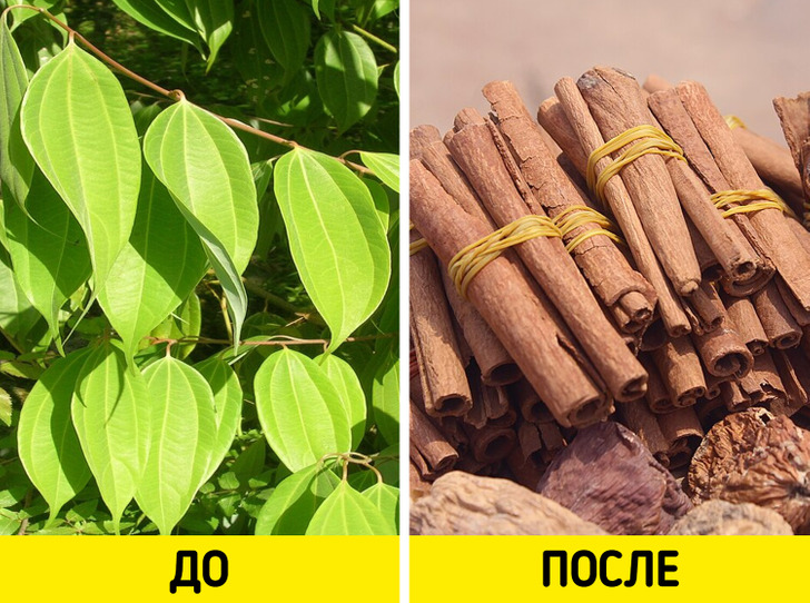 На подсознательном уровне можно догадаться, что корица — это кора дерева. Только не внешняя, а внутренняя. Чтобы мы могли насладиться этой пряностью, со стеблей соскабливают кору, бьют молотком, а затем аккуратно снимают внутреннюю часть — где-то полмиллиметра. Эти полоски высушивают в хорошо проветриваемом помещении. Ну а до начала всего этого процесса корица была вечнозеленым деревом.