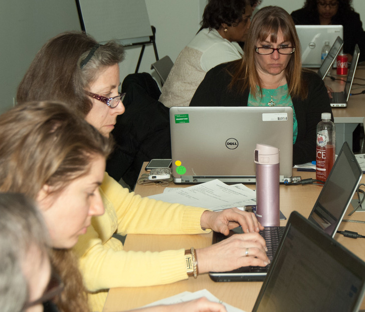 Кошмарные условия - по двое за одним столом, ноуты без мыши. У меня, когда я на ноуте работала, был дополнительный монитор, дополнительная клава и мышь, естественно. А когда предложили пересесть на десктоп, я отказалась - когда отключался свет, мой ноут не выключался, как у тех, кто на десктопах работал.